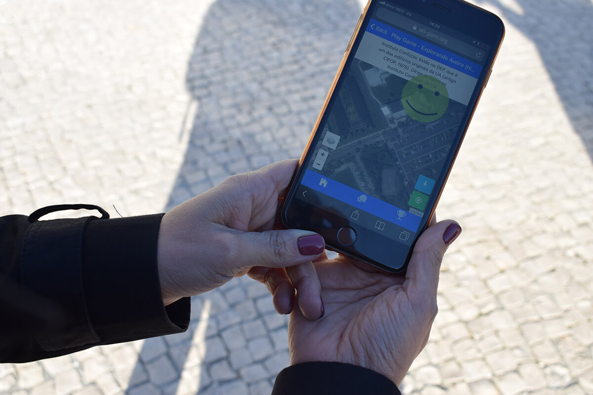 A saída de campo com recurso a Tecnologias de Informação Geográfica e mobile learning realizou-se no dia 5 de dezembro, tendo resultado de uma iniciativa conjunta de Ana V. Rodrigues (docente da referida Unidade Curricular), Vânia Carlos e Lúcia Pombo, investigadoras dos projetos ENAbLE e EduPARK. O percurso incluiu pontos de interesse no âmbito das ciências naturais, da história e da geografia da cidade de Aveiro, através dos jogos digitais OriGami e da App EduPARK. Esta experiência, de articulação entre investigação e formação inicial, visou proporcionar aos/às estudantes, futuros/as professores/as, a vivência de metodologias ativas de ensino e aprendizagem ao ar livre que poderão usar futuramente, com os seus/suas alunos/as.