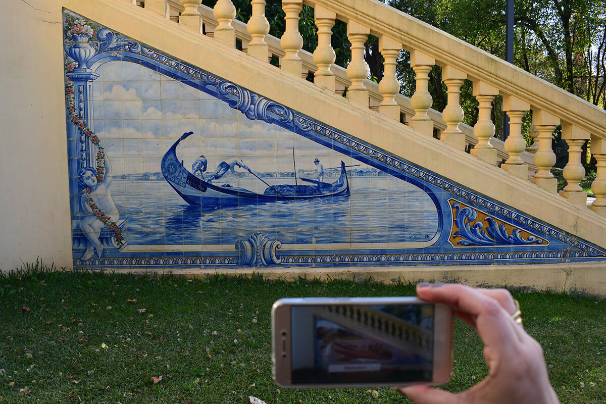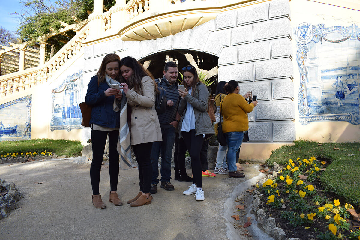 Após uma aula de contextualização teórica em mobile learning e de apresentação do Projeto EduPARK, as duas turmas de CIN II desenvolveram a atividade do projeto no Parque Infante D. Pedro, nos dias 19 e 22 de novembro. Neste âmbito, os estudantes exploraram o guião educativo dirigido ao seu nível académico, onde se integram questões articuladas com os conteúdos programáticos de CIN I e CIN II, através da app EduPARK. Desta forma, foi fomentada uma aprendizagem autêntica, com base nos princípios de geocaching e explorando os recursos em Realidade Aumentada em azulejos e placas de identificação que se encontram espalhadas pelo parque.