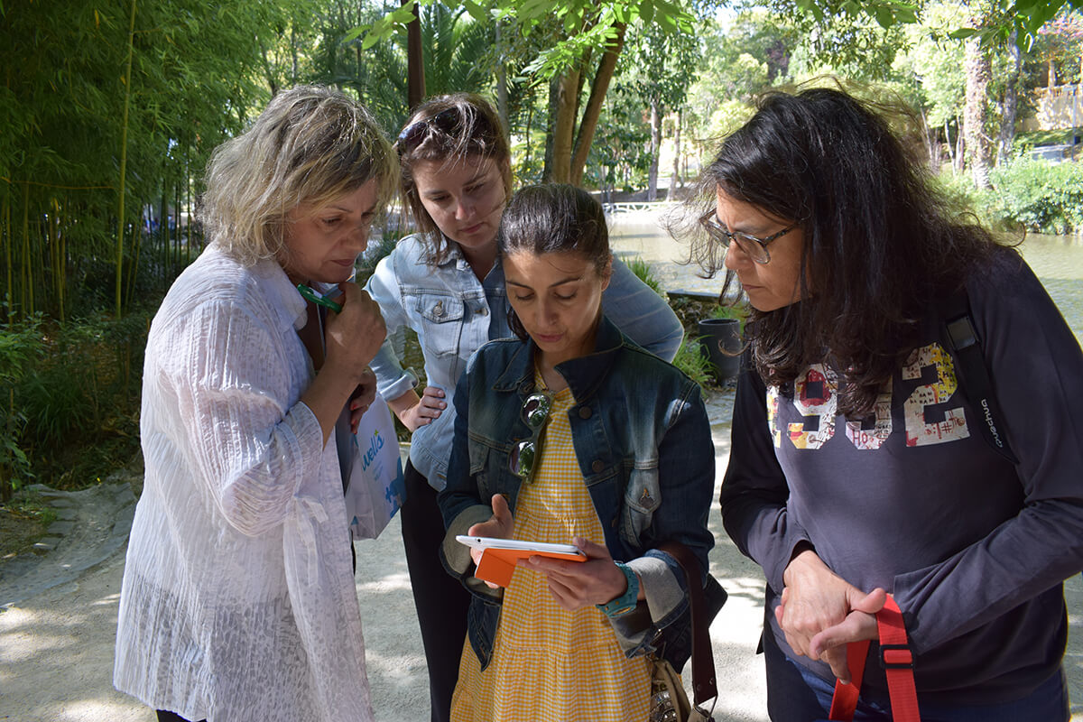 Em grupo, os jovens exploradores percorreram o Parque seguindo as orientações da Macaca da aplicação EduPARK para experimentar a realidade aumentada disponível em diversos pontos de interesse do Parque e descobrir, ou mesmo relembrar, o estado físico da água do lago, as cores primárias de equipamento do jardim infantil e as estruturas reprodutoras de espécies botânicas do Parque, entre outros. O jogo da aplicação EduPARK despertou interesse e entusiasmo por parte dos jovens, que em período de férias se divertiram a aprender, num contexto de aprendizagem não formal.