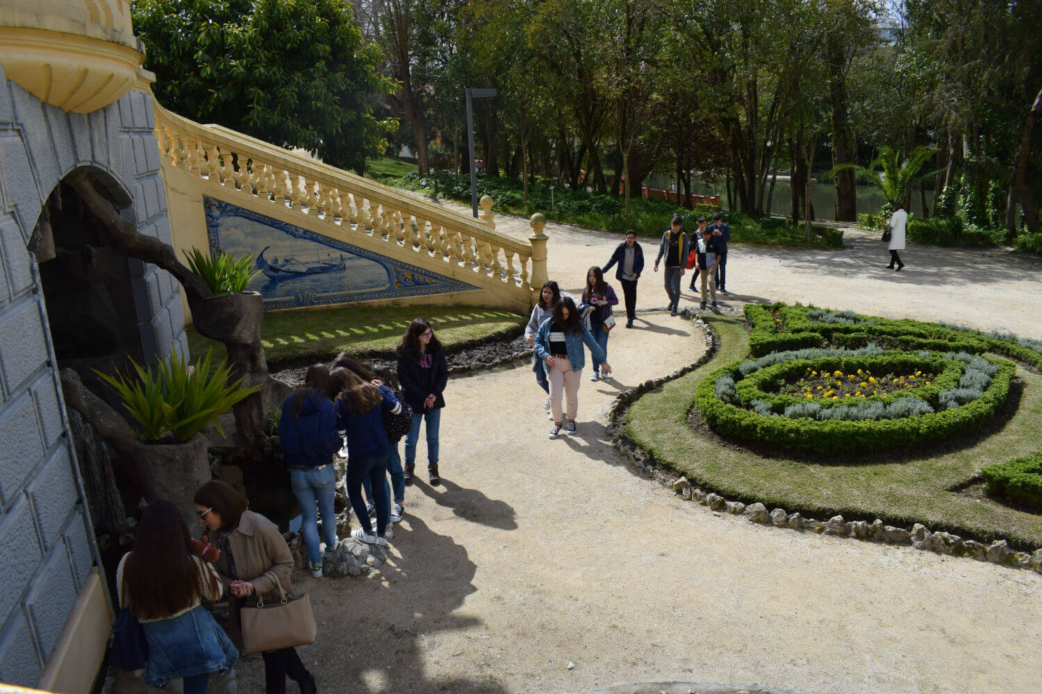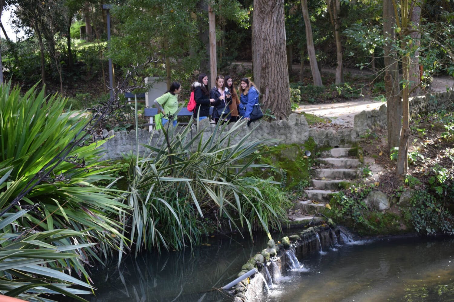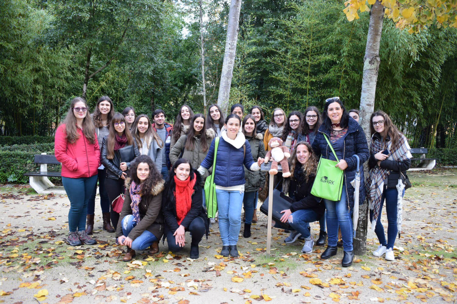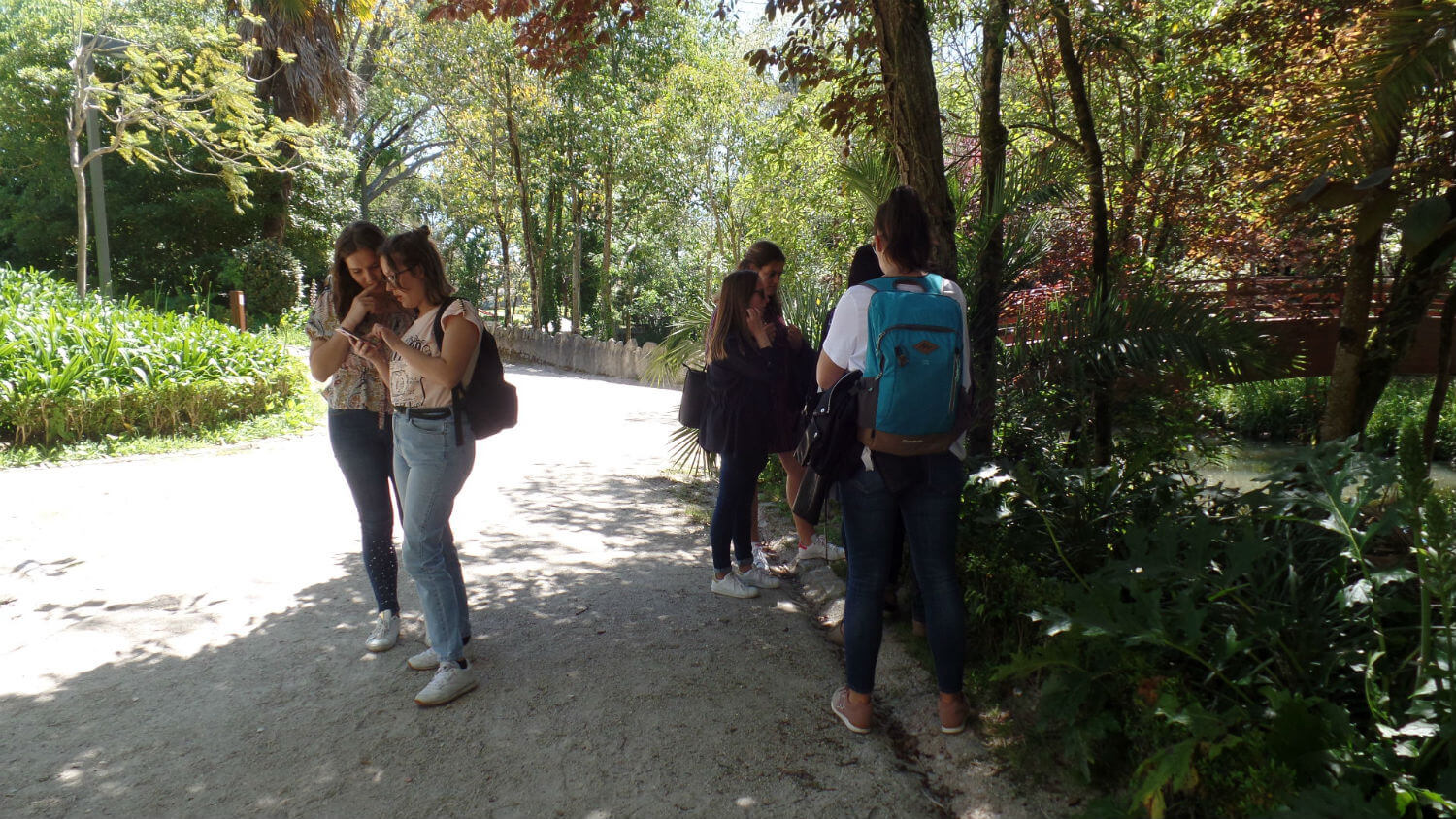 Os alunos do 11º e 12º anos e suas professoras acompanhantes exploraram o parque com o apoio do guião da app EduPARK dirigido ao turista, em Inglês. Neste guião a Macaca fornece orientações e apresenta conteúdos em língua inglesa, oferecendo oportunidades de aprendizagem autêntica e contextualizada em diferentes locais de interesse do parque.
