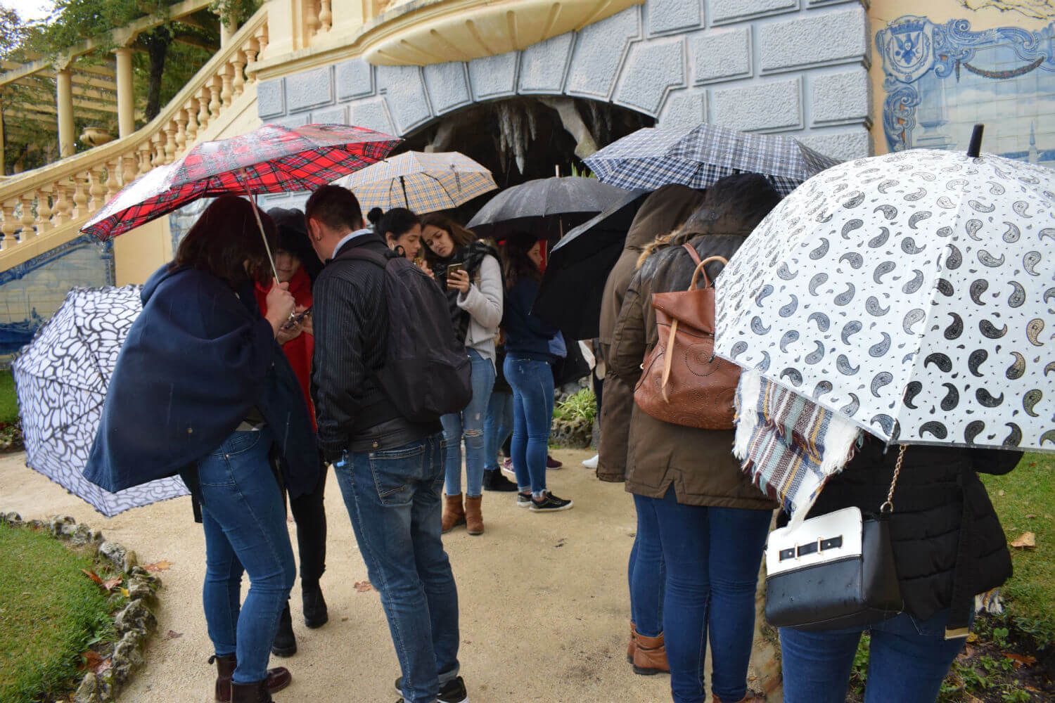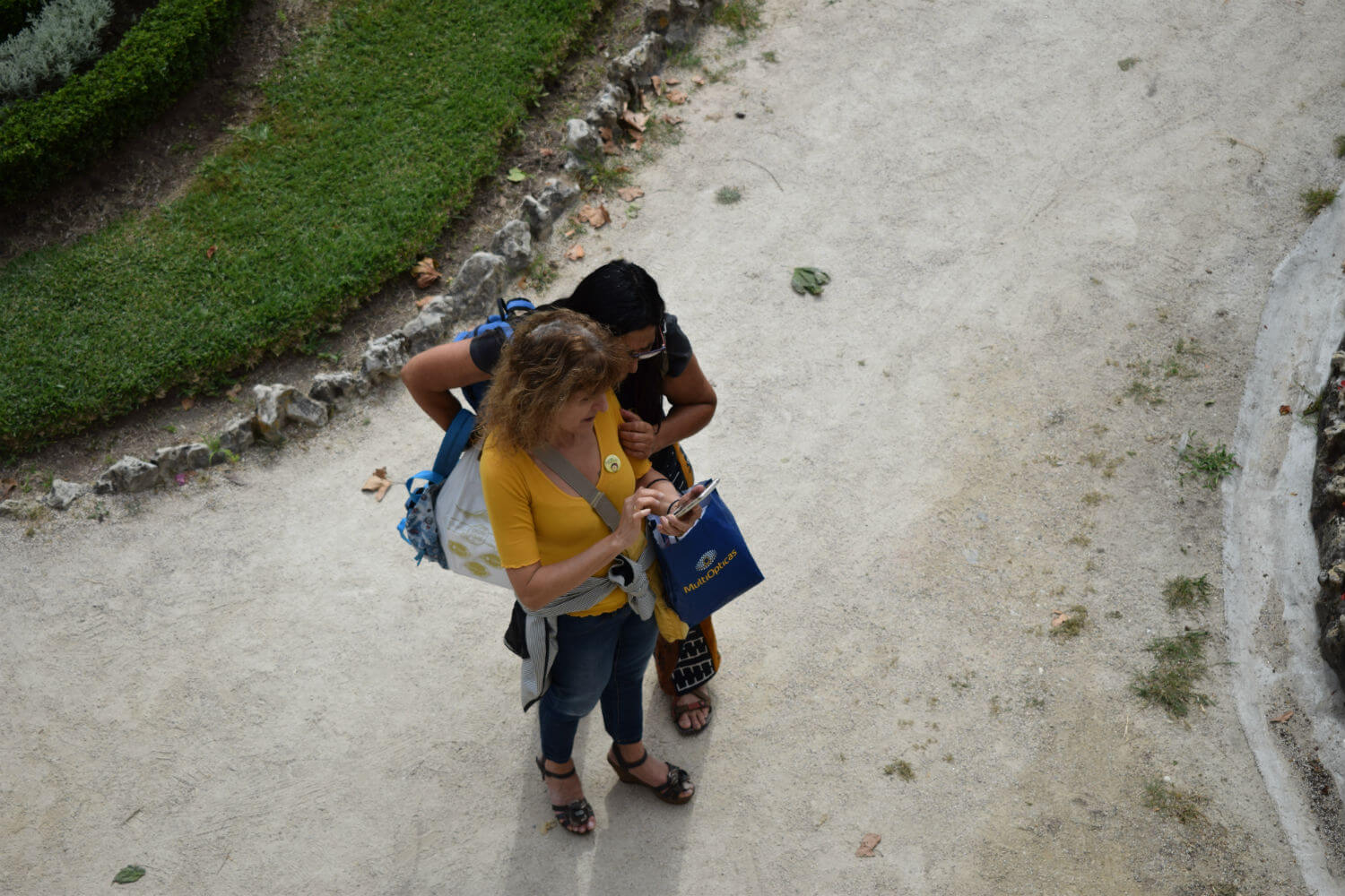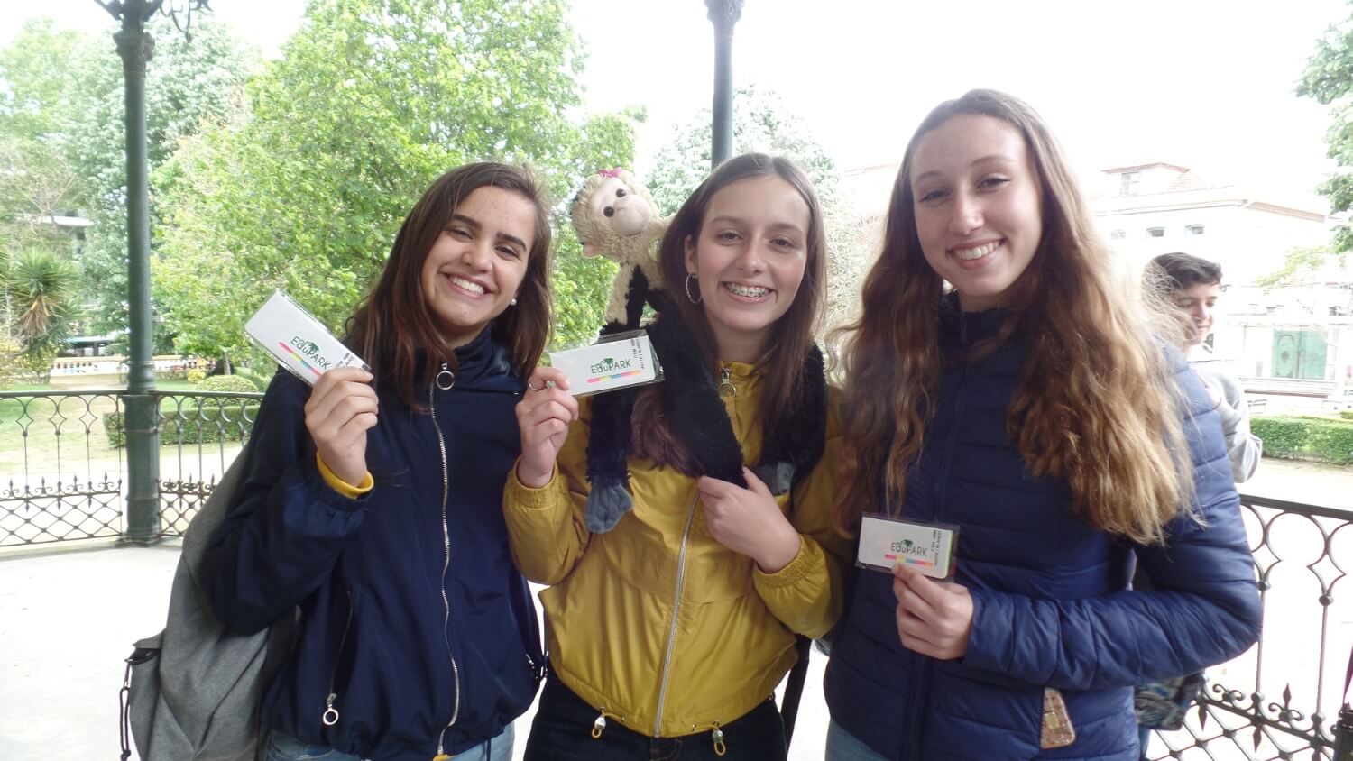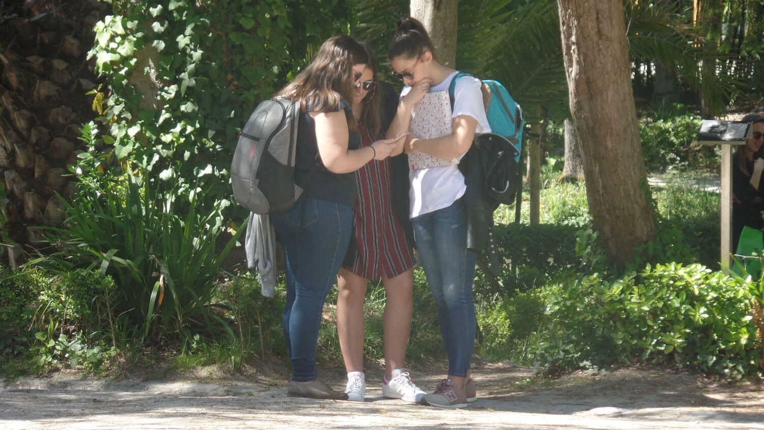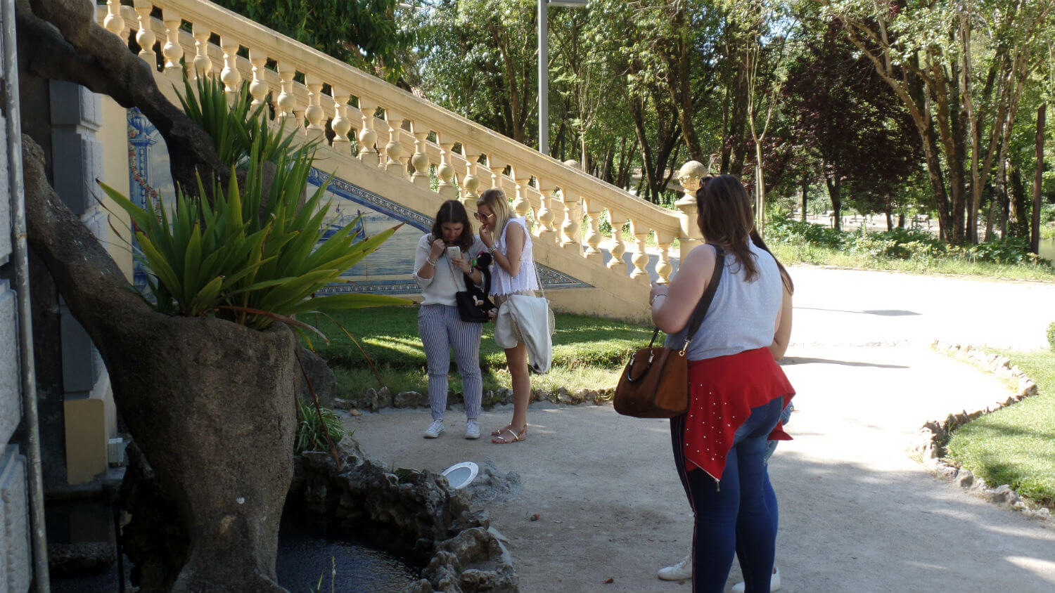 Os alunos do 11º e 12º anos e suas professoras acompanhantes exploraram o parque com o apoio do guião da app EduPARK dirigido ao turista, em Inglês. Neste guião a Macaca fornece orientações e apresenta conteúdos em língua inglesa, oferecendo oportunidades de aprendizagem autêntica e contextualizada em diferentes locais de interesse do parque.