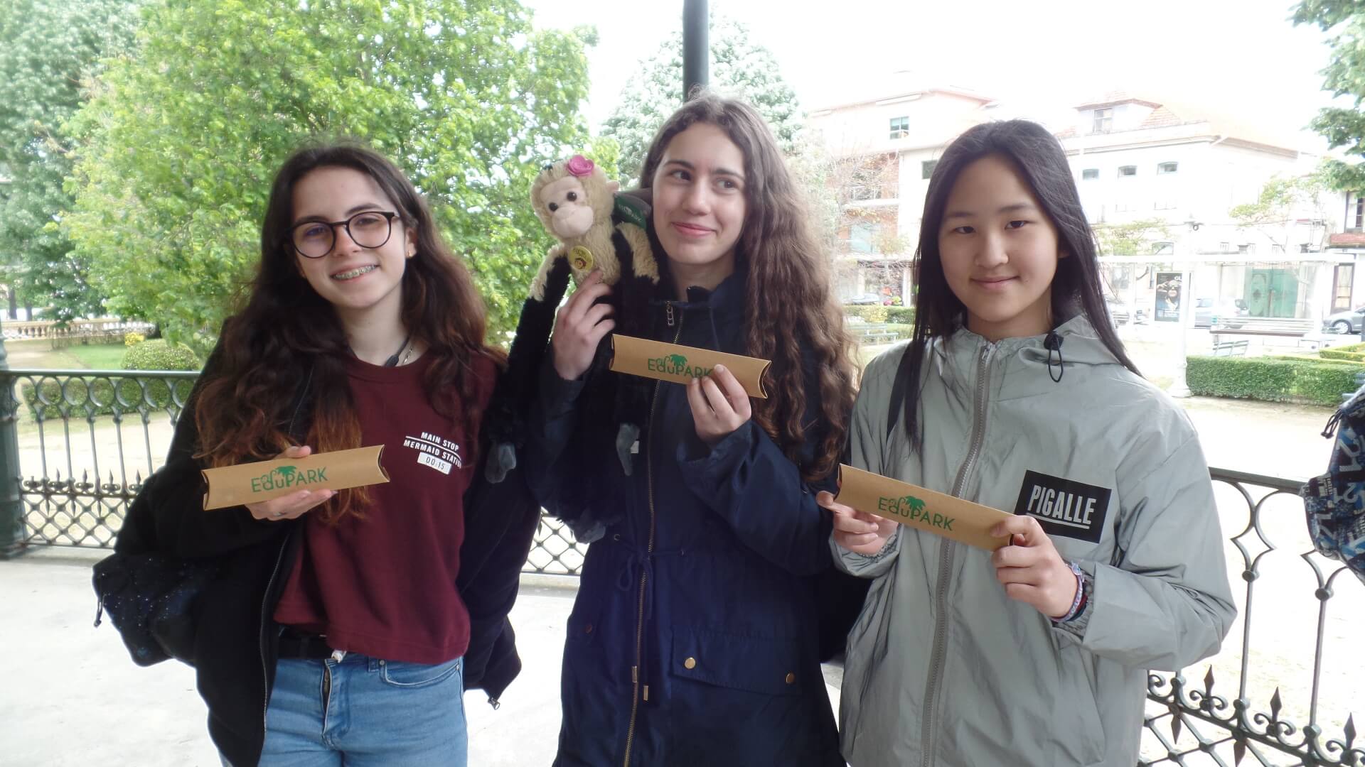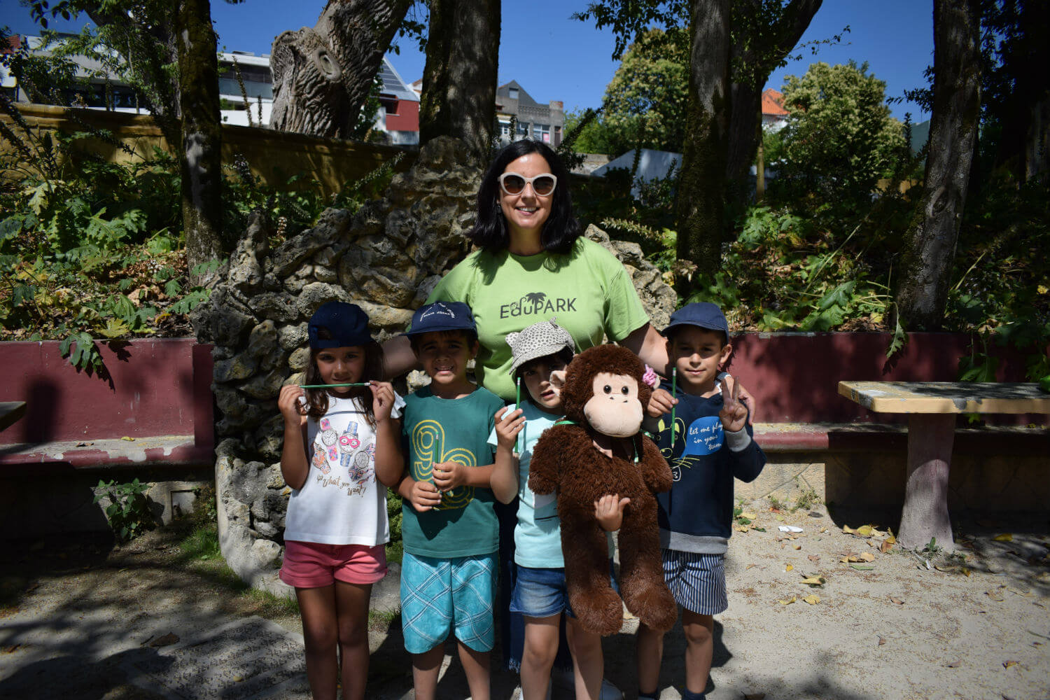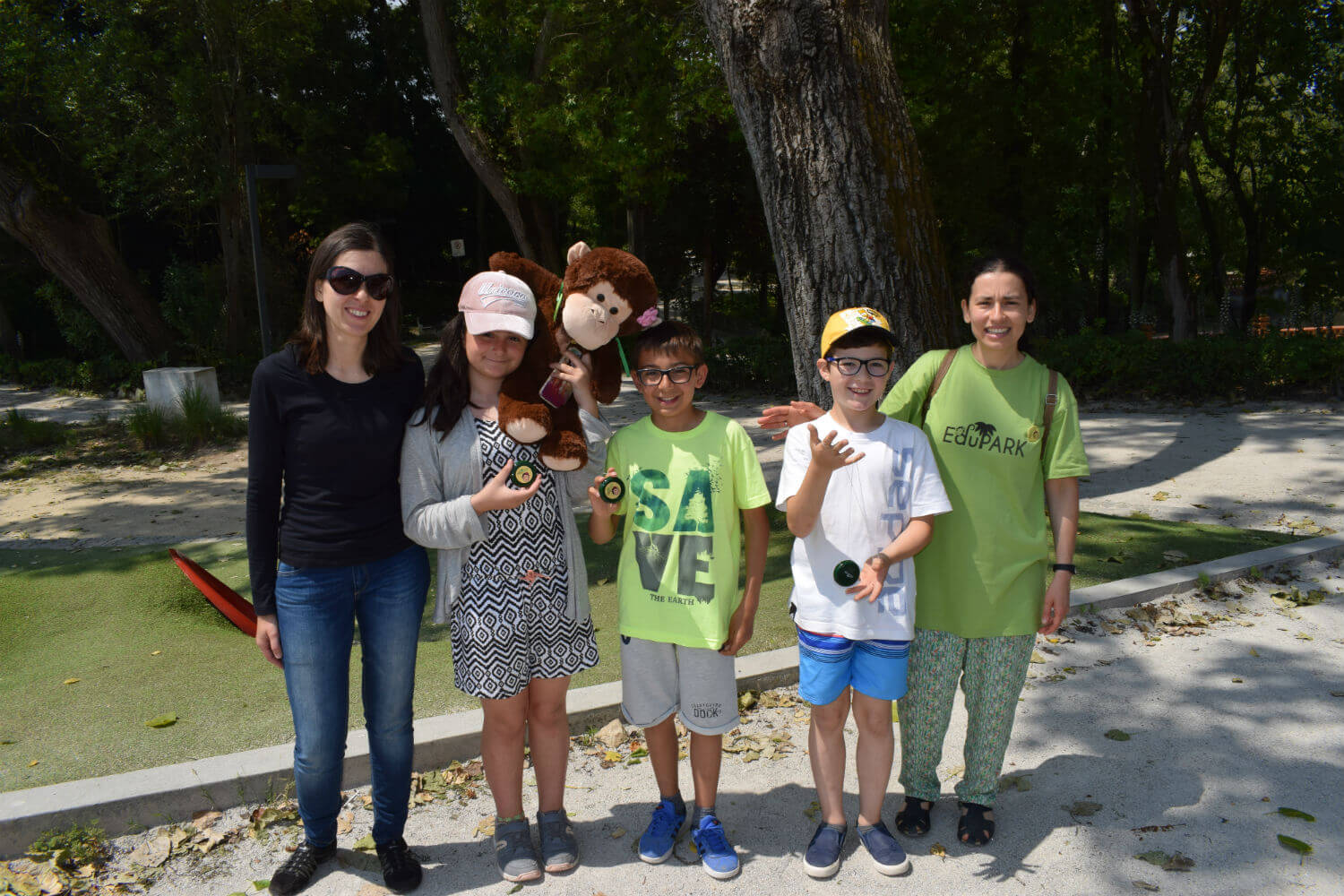 Acompanhados da Macaca do EduPARK, a simpática mascote do projeto, os Guardiões do Planeta divertiram-se com um jogo da aplicação móvel do projeto, que os levou a percorrer um trilho no parque e a aprender coisas novas sobre várias espécies botânicas do parque, sobre ilustres históricos Aveirenses ou mesmo sobre matemática na Casa de Chá.