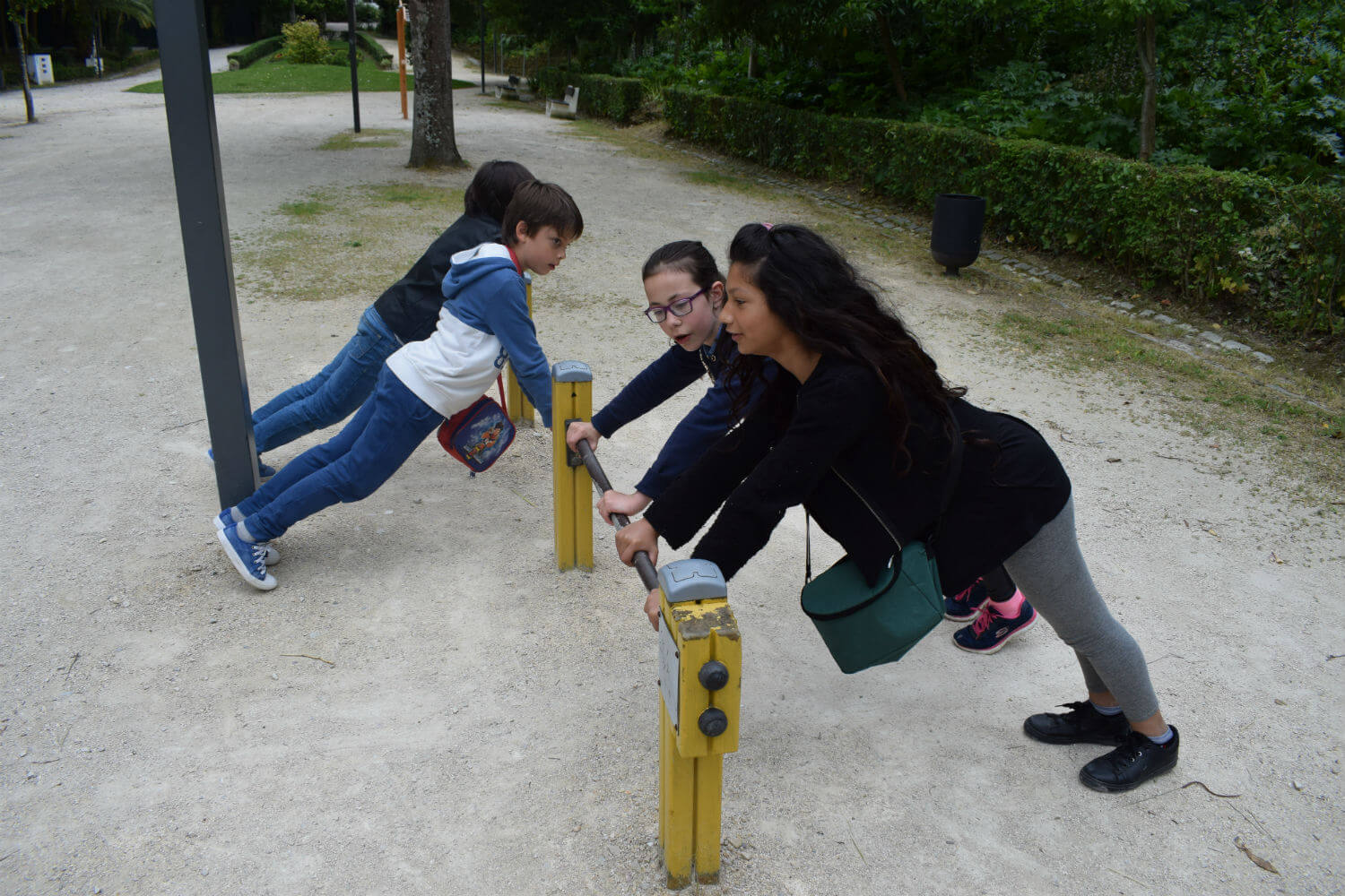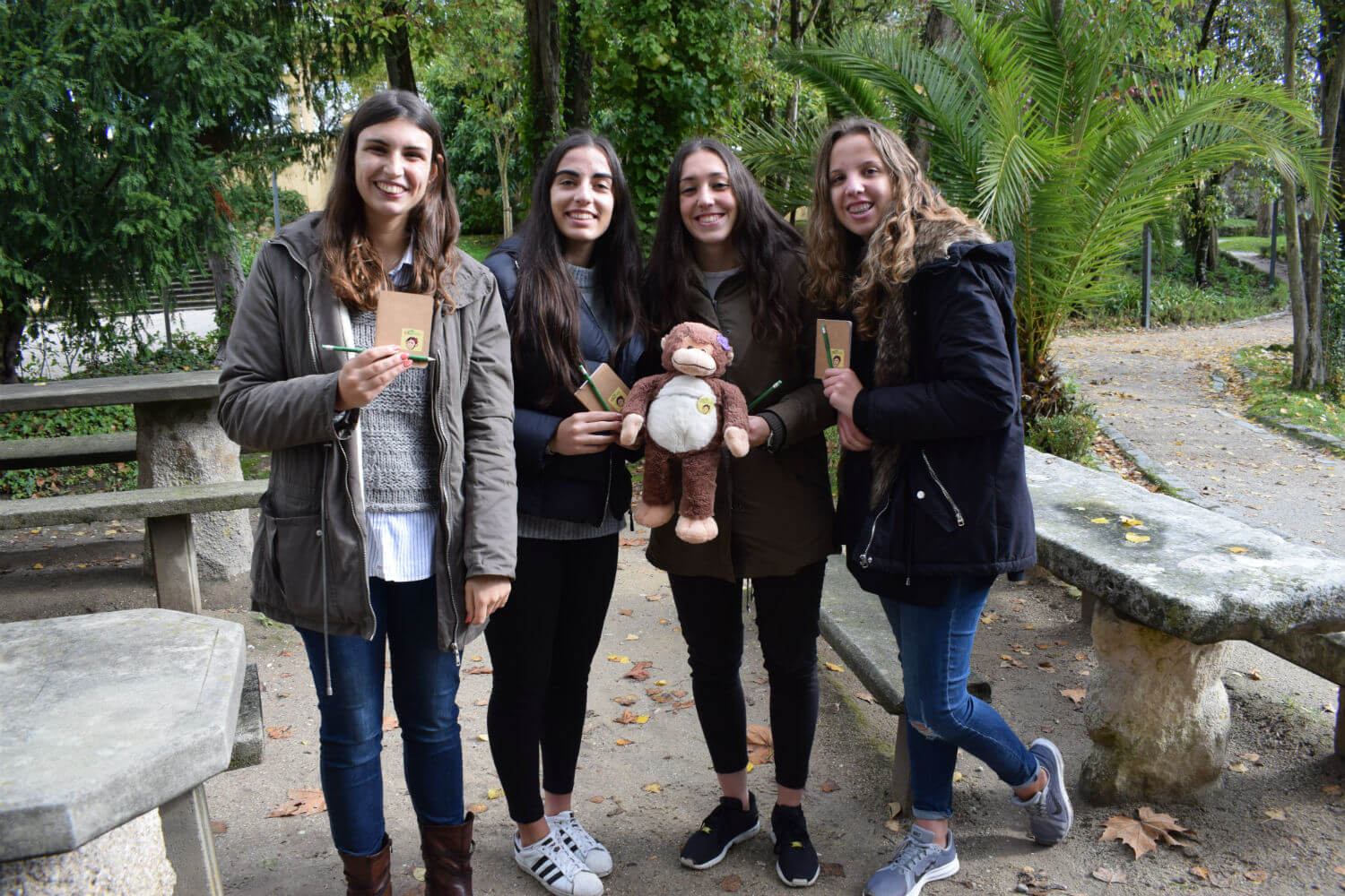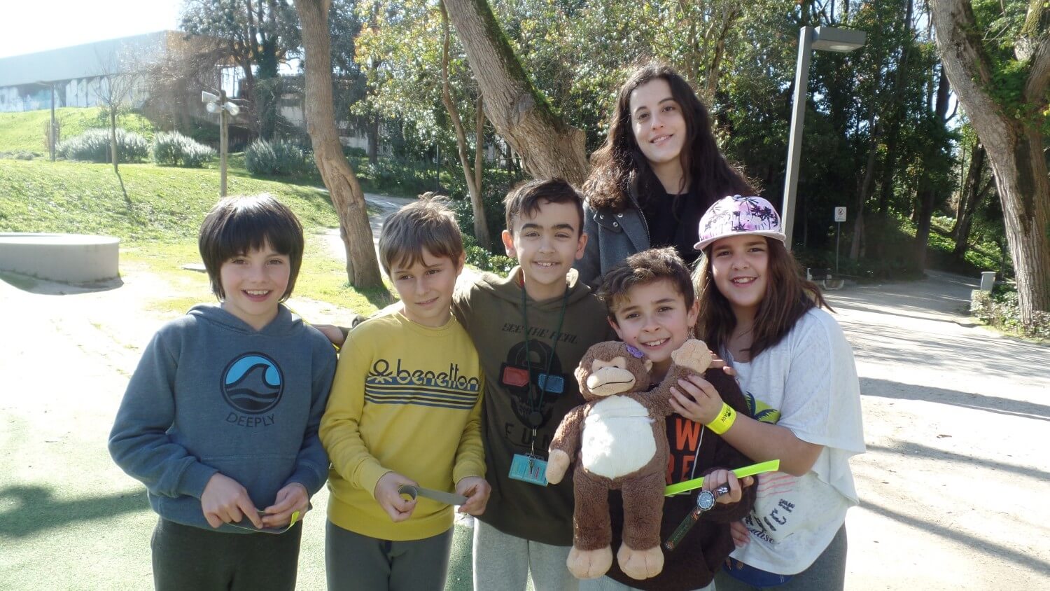 Acompanhados da Macaca do EduPARK, a simpática mascote do projeto, os Guardiões do Planeta divertiram-se com um jogo da aplicação móvel do projeto, que os levou a percorrer um trilho no parque e a aprender coisas novas sobre várias espécies botânicas do parque, sobre ilustres históricos Aveirenses ou mesmo sobre matemática na Casa de Chá.