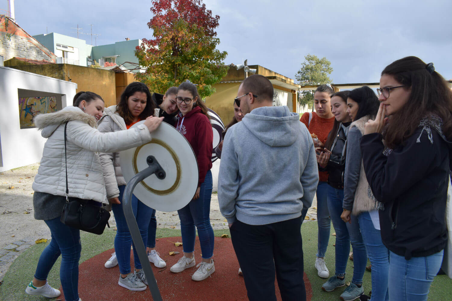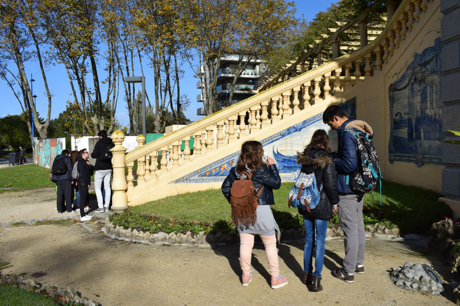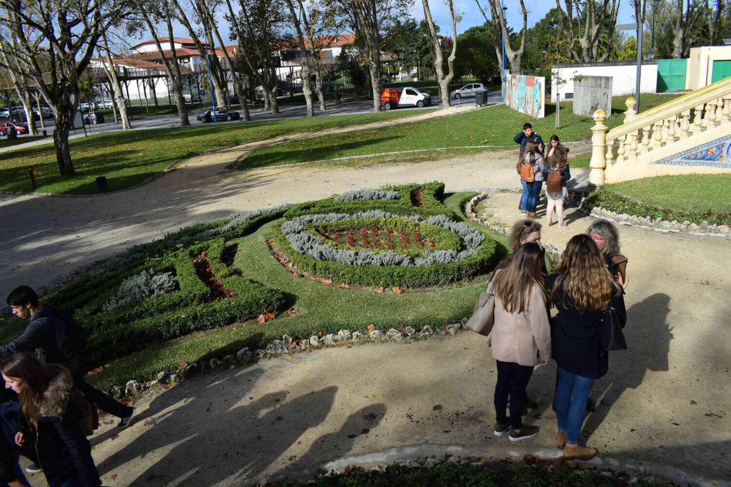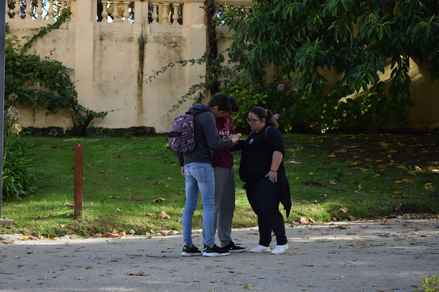 Após uma aula de contextualização teórica em mobile learning e de apresentação do Projeto EduPARK, as duas turmas de CIN II desenvolveram a atividade do projeto no Parque Infante D. Pedro, nos dias 19 e 22 de novembro. Neste âmbito, os estudantes exploraram o guião educativo dirigido ao seu nível académico, onde se integram questões articuladas com os conteúdos programáticos de CIN I e CIN II, através da app EduPARK. Desta forma, foi fomentada uma aprendizagem autêntica, com base nos princípios de geocaching e explorando os recursos em Realidade Aumentada em azulejos e placas de identificação que se encontram espalhadas pelo parque.