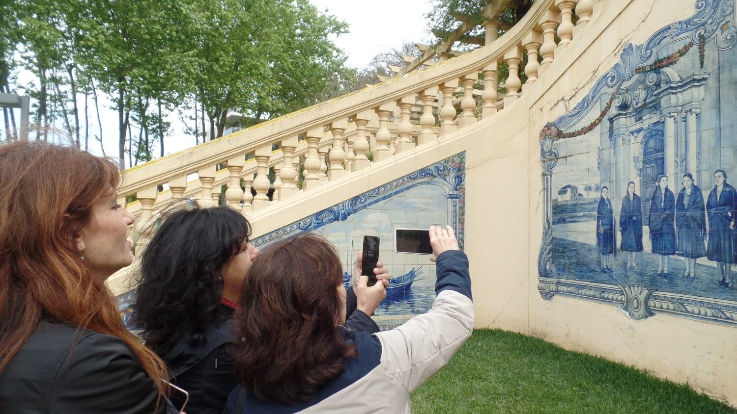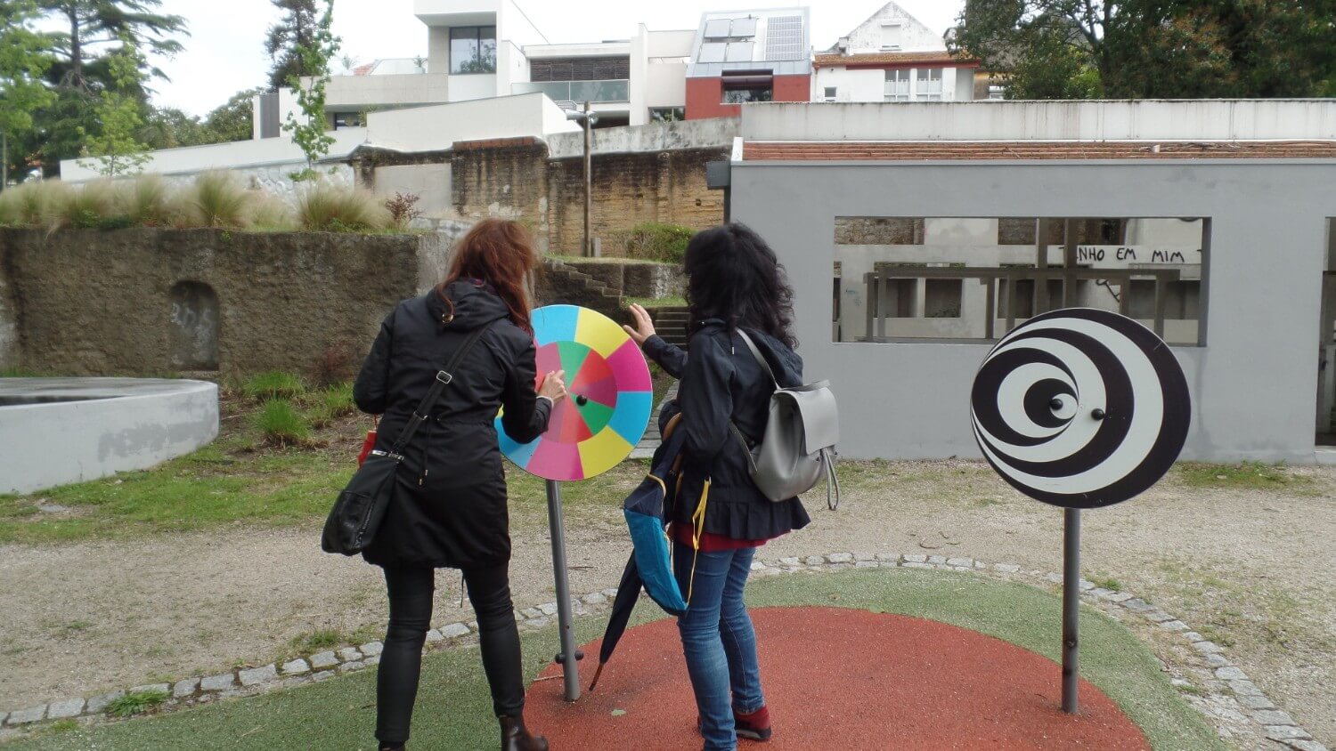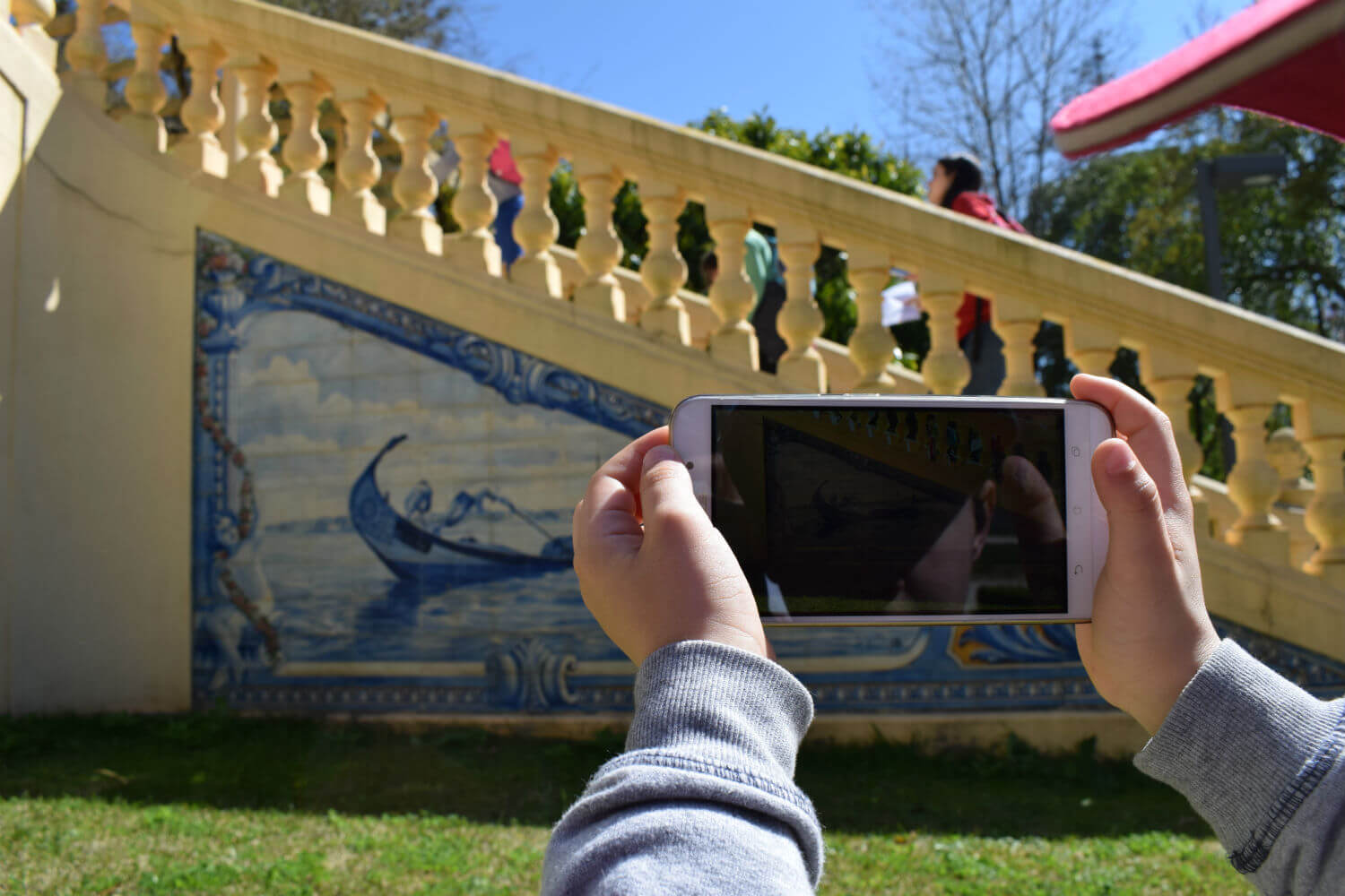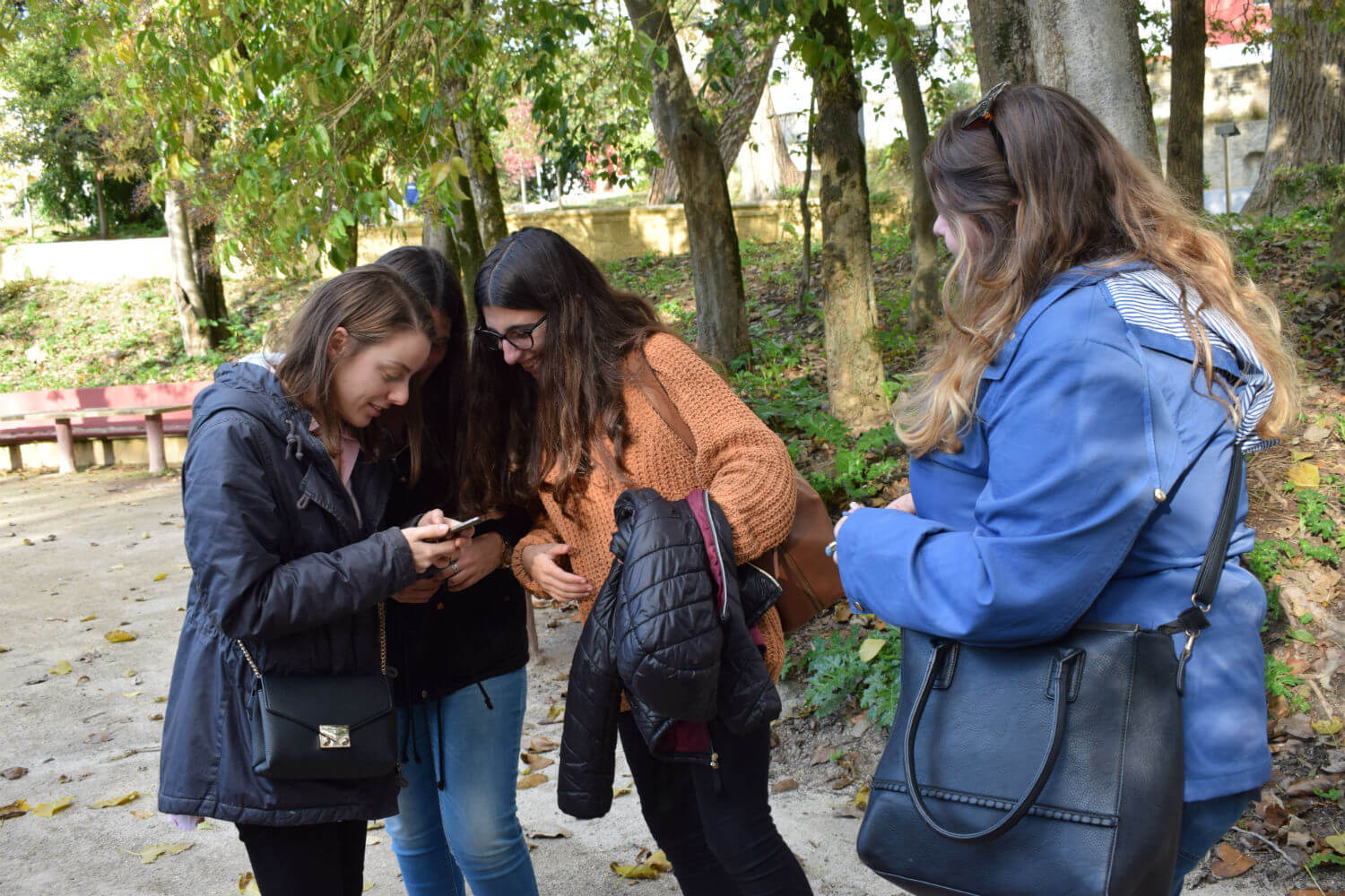 Após uma aula de contextualização teórica em mobile learning e de apresentação do Projeto EduPARK, as duas turmas de CIN II desenvolveram a atividade do projeto no Parque Infante D. Pedro, nos dias 19 e 22 de novembro. Neste âmbito, os estudantes exploraram o guião educativo dirigido ao seu nível académico, onde se integram questões articuladas com os conteúdos programáticos de CIN I e CIN II, através da app EduPARK. Desta forma, foi fomentada uma aprendizagem autêntica, com base nos princípios de geocaching e explorando os recursos em Realidade Aumentada em azulejos e placas de identificação que se encontram espalhadas pelo parque.