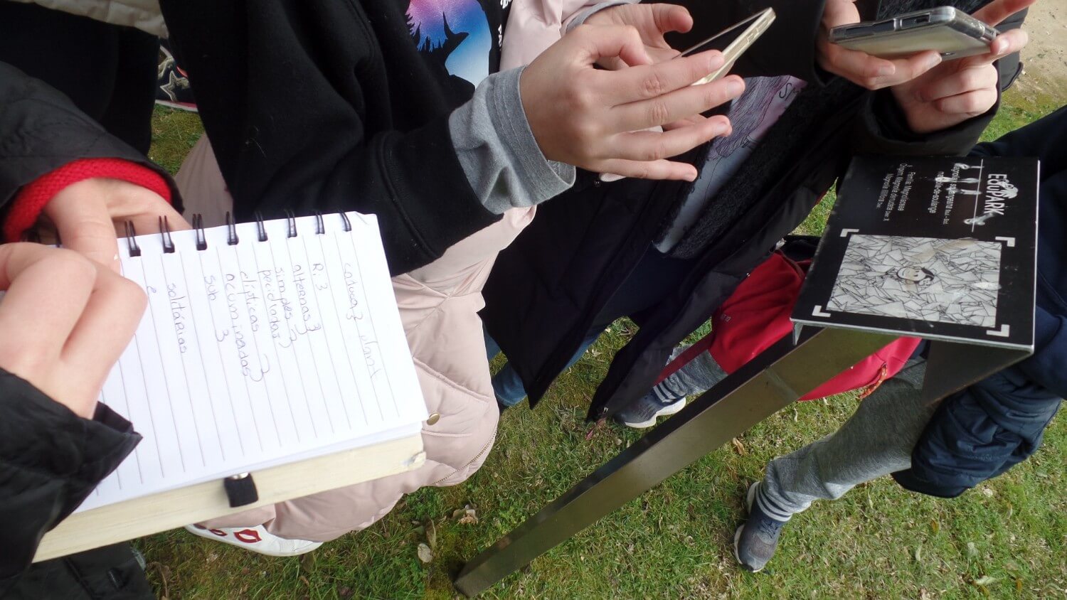 Foi com muito entusiasmo que os jovens alunos se envolveram no jogo suportado pela app EduPARK. Em grupo, leram as instruções de orientação disponibilizadas pela app, descobriram os vários locais de interesse do Parque onde poderiam realizar aprendizagens curriculares, exploraram conteúdos multimédia e em Realidade Aumentada relacionados com esses locais, discutiram ideias e possíveis soluções para os desafios lançados e ainda descobriram tesouros virtuais.