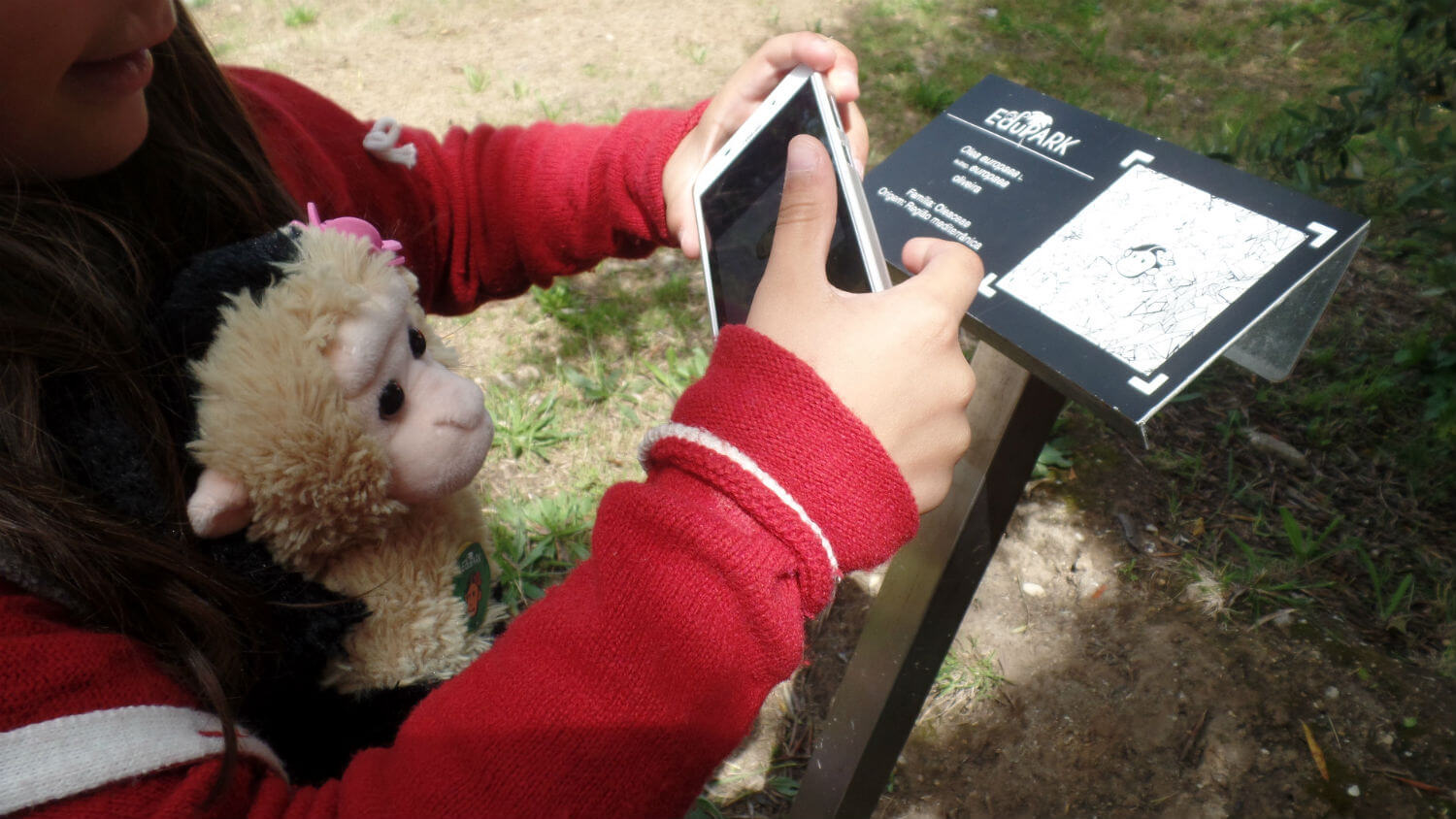 Foi com a ajuda da Macaca que alunos e professores descobriram diferentes pontos de interesse do Parque, com conteúdos em Realidade Aumentada, para aprender biologia, matemática, inglês, e outras disciplinas, de forma contextualizada e autêntica.