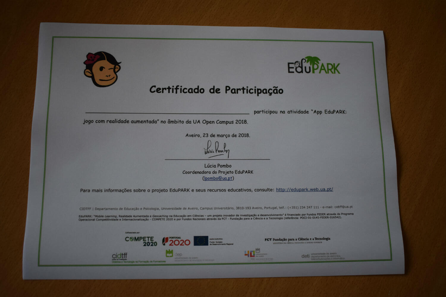 O projeto EduPARK participou na UA Open Campus 2017 com a atividade “Vem experimentar a aplicação móvel em Realidade Aumentada do projeto EduPARK”. Foram realizadas duas sessões no dia 10 de maio, com 23 alunos de escolas secundárias de Ermesinde, Felgueiras e Manteigas. Os participantes formaram grupos para testar a mais recente versão da aplicação do EduPARK, como se estivessem no próprio parque e já com conteúdos em realidade aumentada. Esta versão foi desenvolvida em parceria pelo projeto EduPARK e pelas alunas do Mestrado em Ensino do 1.º CEB e de Matemática e Ciências Naturais do 2.º CEB Márcia Carvalho e Ana Rita Rodrigues, que são orientandas das Professoras Doutoras Teresa Neto e Lúcia Pombo.