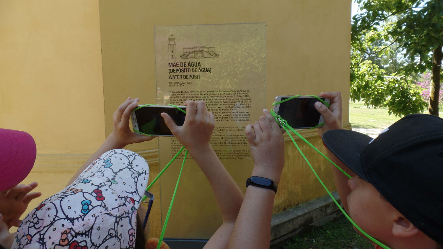Numa época em que se debate o uso de telemóveis nas escolas, continua a aumentar a procura das atividades dinamizadas pelo projeto EduPARK, que promovem a aprendizagem móvel com realidade aumentada, em ambientes outdoor. Apenas na última semana, cerca de 55 crianças e jovens de três instituições que promovem aprendizagem não formal – os centros de estudos Cartola do Sábio (Aradas) e Soma e Segue (Esgueira) e também o Conservatório de Música de Barcelos – já usaram a aplicação EduPARK que integra diversos guiões ou jogos educativos, para aprender biologia, matemática, entre outras disciplinas, de uma forma diferente no Parque Infante D. Pedro, também conhecido como Parque da Macaca.