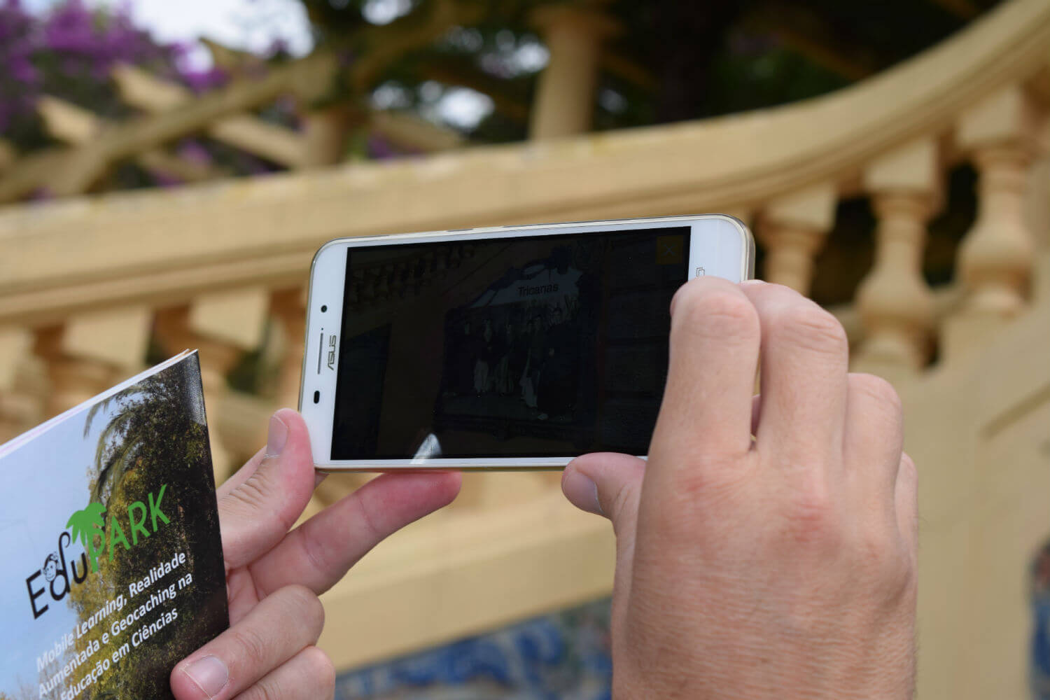 Desta forma, tiveram a oportunidade de realizar aprendizagens autênticas e contextualizadas no parque, através das tecnologias móvel e de realidade aumentada, despoletada através de marcadores presentes em placas identificativas de plantas e em azulejos do parque.