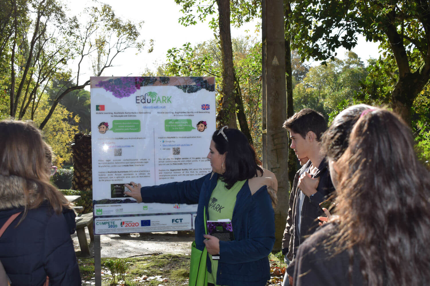 O projeto EduPARK contou com 16 participantes da Escola Profissional de Campanhã na atividade “App EduPARK: jogo com realidade aumentada”, realizada ao ar livre, no Jardim da Ciência, simulando-se o jogo no parque.